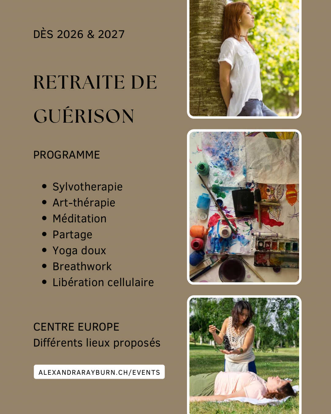 Les prochaines dates de mes retraites de guérison profonde seront bientôt annoncées. Chaque retraite inclura un atelier pour mieux avancer sur votre chemin de guérison, des séances de breathwork, un journal pratique, ainsi que des soins holistiques visant à guérir vos corps subtils et à libérer les peines du passé. Vous découvrirez également la clé qui m’a permis d’atteindre l’illumination, afin de cultiver la paix intérieure et de vivre en harmonie avec vous-même. Cette expérience unique vous aidera à transformer et améliorer votre vie.